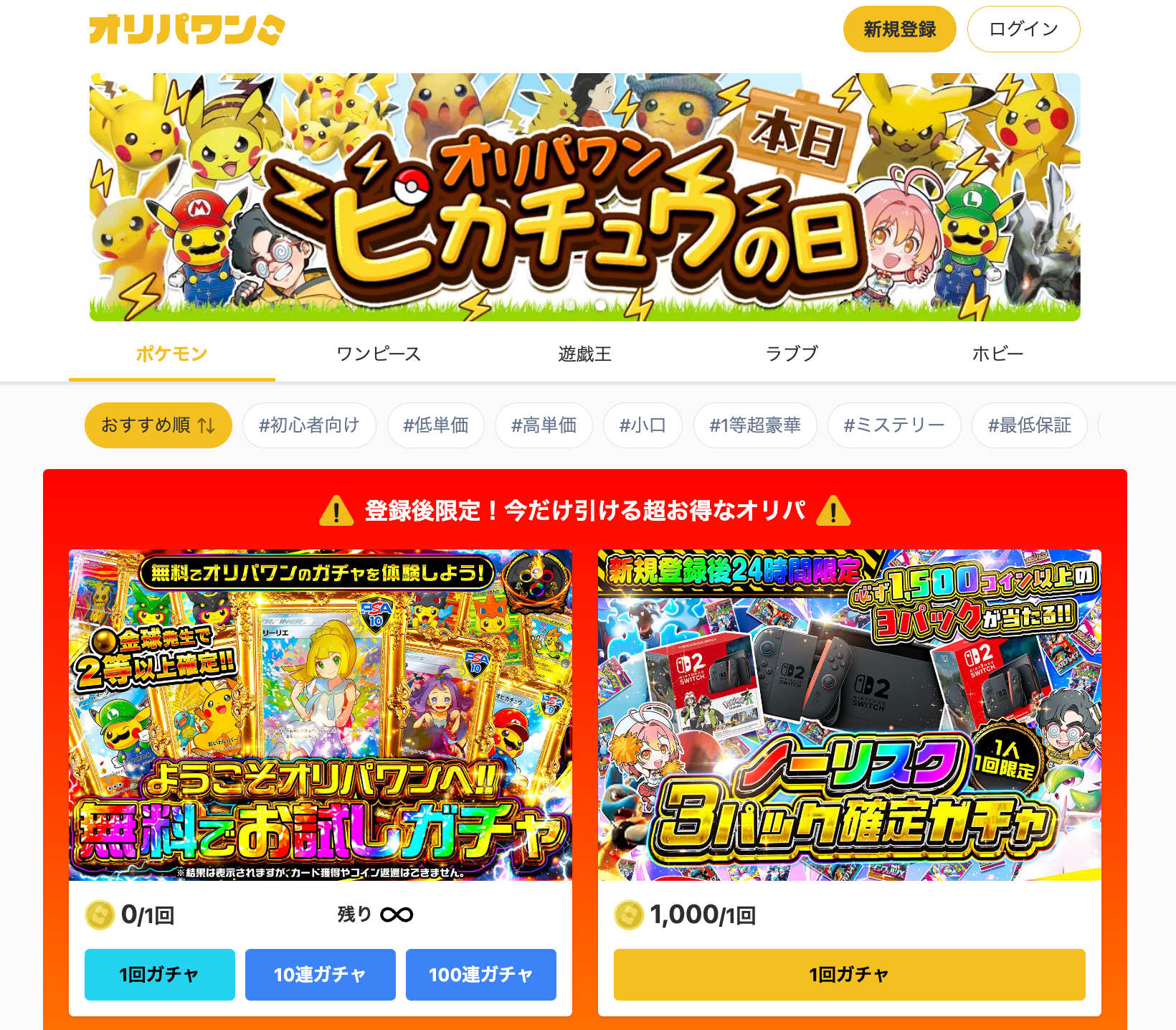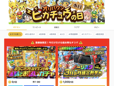 「オリパワン」は、カードファンに向けたオンラインオリパ(オンラインくじ)サービスです。