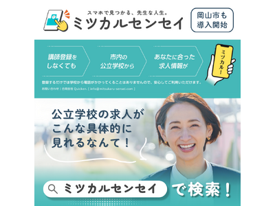 講師求人に特化した公立学校に特化したプラットフォーム「ミツカルセンセイ」の活用を視野に入れ、
