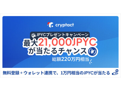 暗号資産(仮想通貨)の自動損益計算サービス「クリプタクト」を運営する株式会社pafin(共同代表取締役 アズムデ アミン/斎藤 岳、以下「当社」)は、日本円建てステーブルコイン「JPYC」総額220万円分のプレゼントキャンペーンを実施いたします。