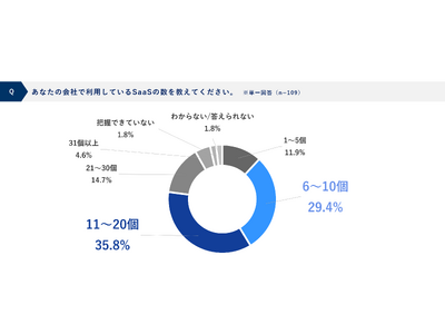 利用しているSaaSの数が「6個以上」と回答した企業は84.5%で、うち55.1%が「11個以上」であることが明らかになりました。