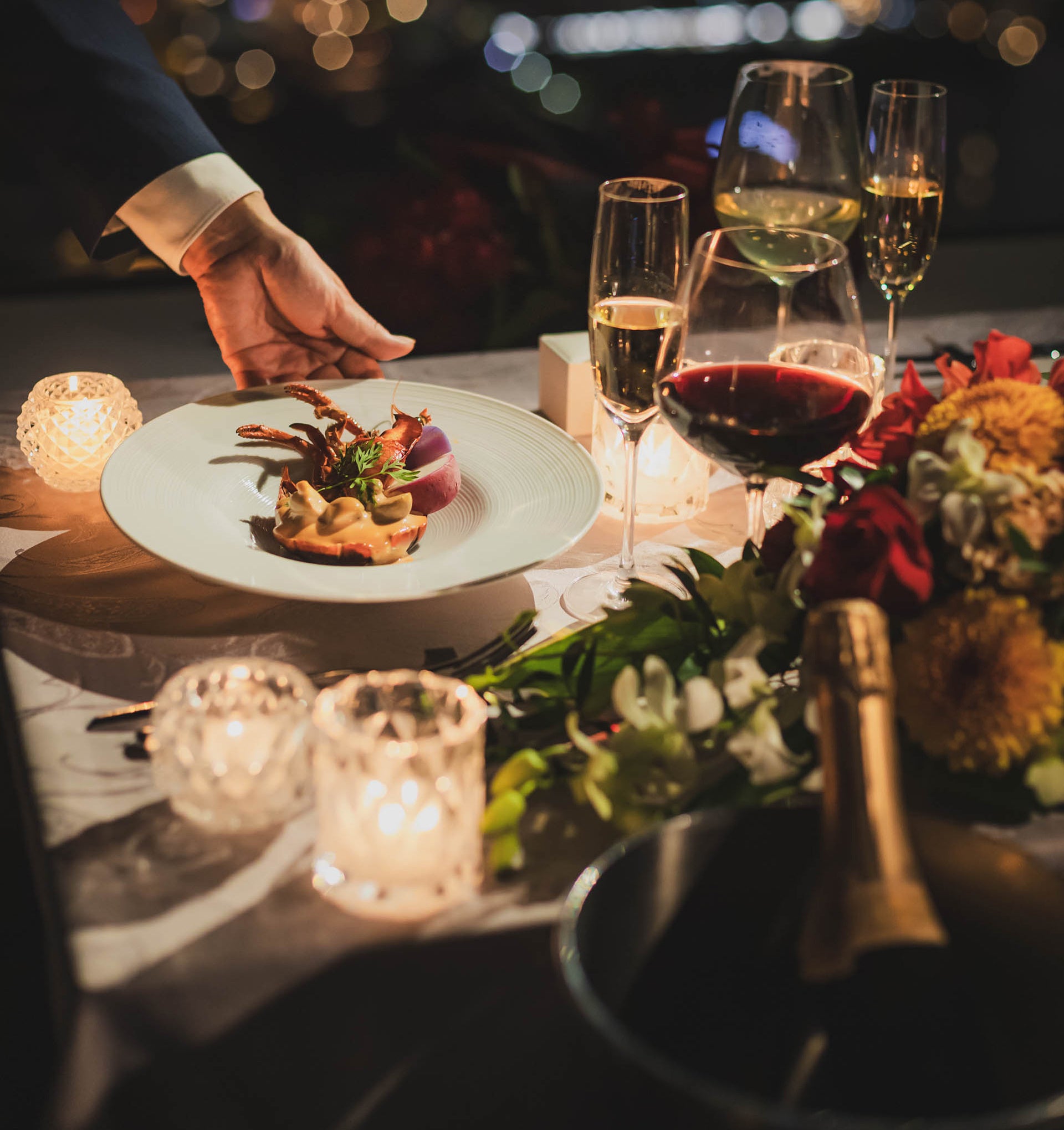 キャンドルの灯りが照らすテーブルで、グラスを傾けながら楽しむ美食のひととき--。