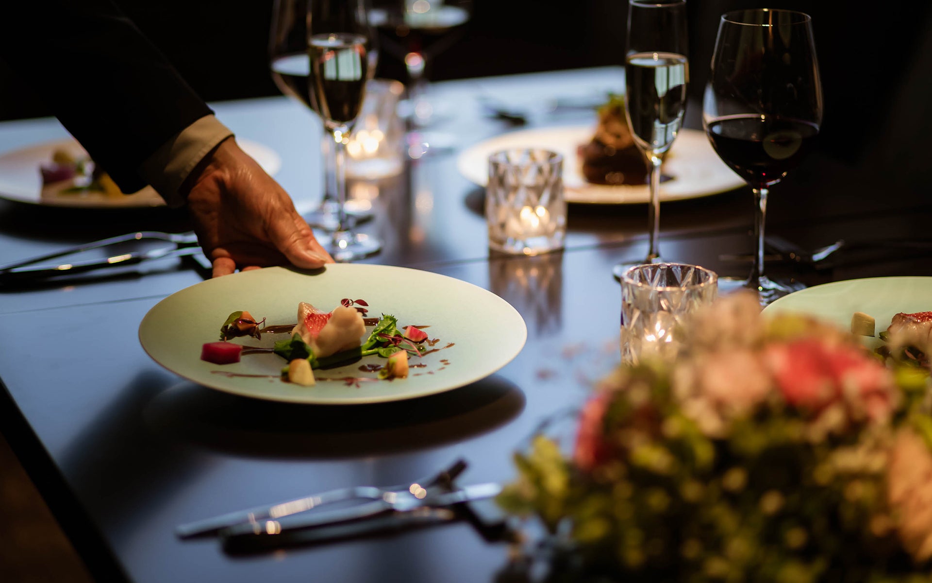 コースが始まり、香り立つ一皿とともに、穏やかな会話がテーブルを包む。