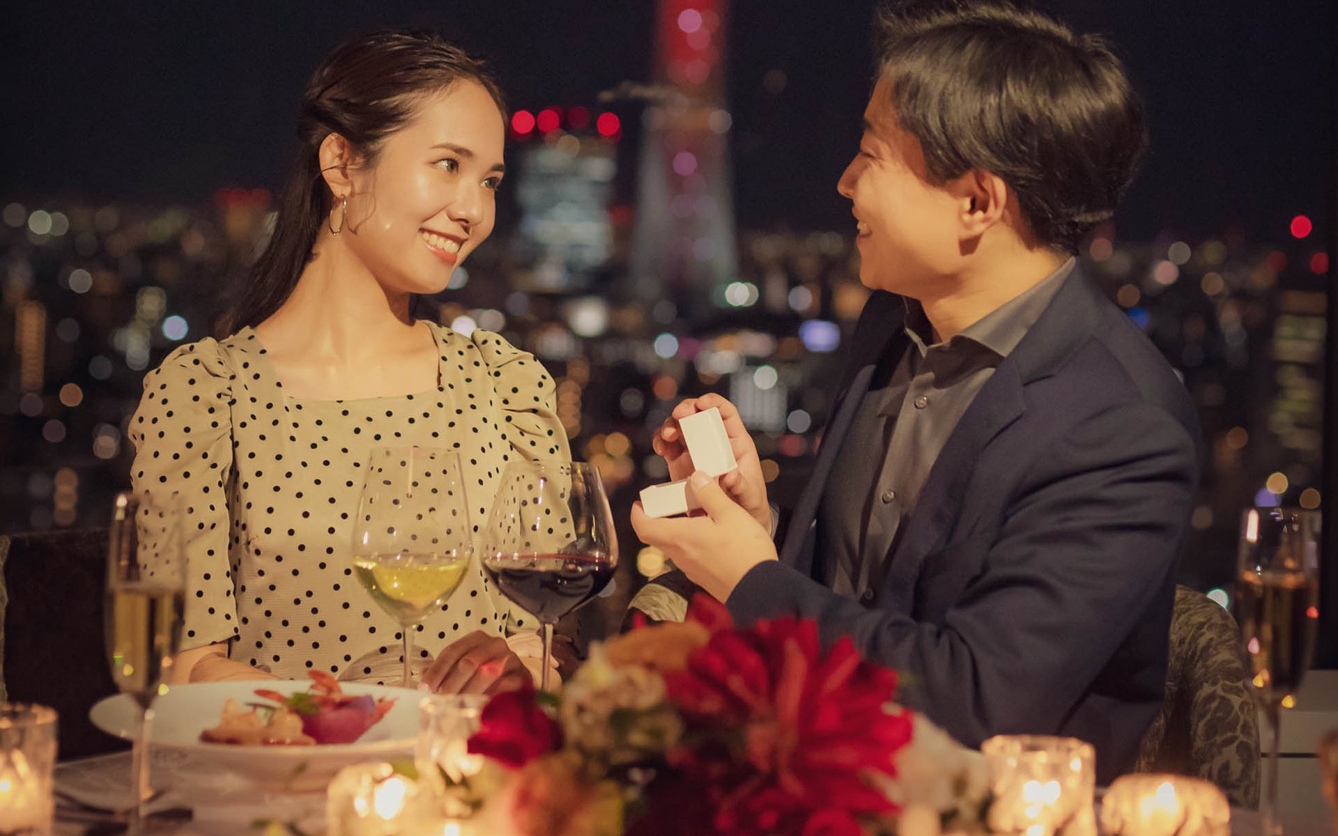 夜景とキャンドルに見守られた聖夜の約束