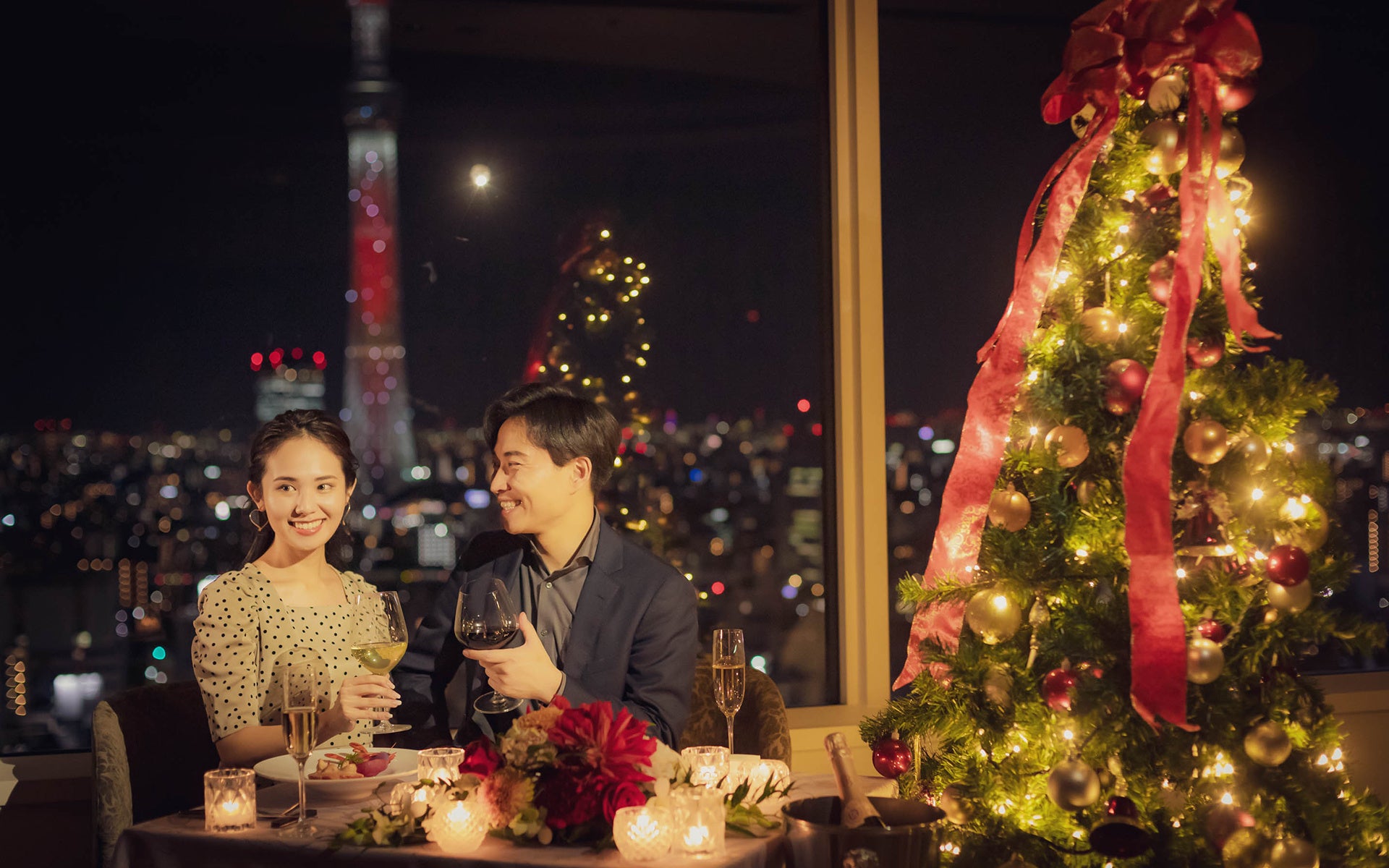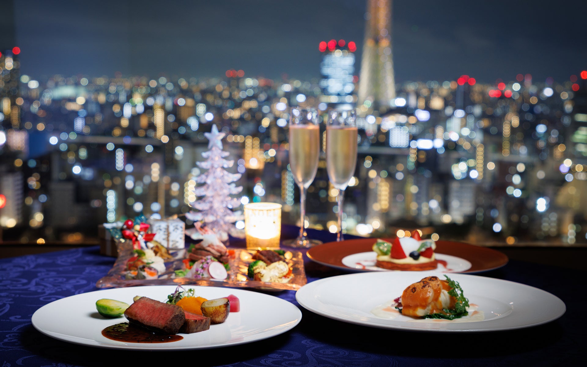 東京スカイツリー(R)を望む絶景とともに味わう、クリスマス限定ディナーコース。