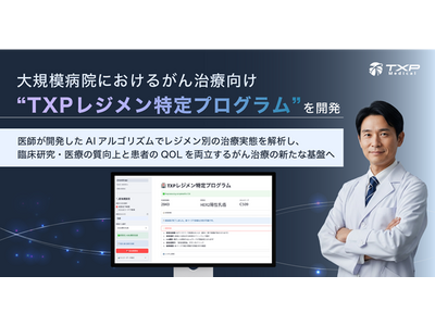 TXP Medical株式会社(本社:東京都千代田区、代表取締役:園生智弘、以下TXP Medical)は、2025年11月25日、様々な悪性腫瘍に対応する『TXPレジメン特定プログラム』を開発、提供を開始したことをお知らせいたします。本プログラムは、医師の知見とAI技術をかけ合わせ、各医療機関が保有する大規模な治療・予後データをレジメン(※)単位で自動解析するものです。これにより、施設間および疾患間の治療成績や副作用傾向を可視化し、がん分野における臨床研究と医療の質向上を促進します。