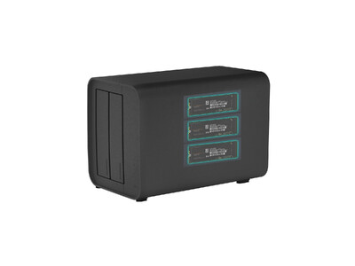 D5 Hybridは、2台のSATA HDD/SSDと3台のM.2 NVMe SSDを搭載でき、最大68TBのストレージ容量を提供します。HDDの大容量とSSDの高速性を組み合わせることで、ホットデータとコールドデータを効率的に管理できます。