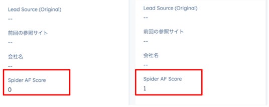 数分以内にリードのSpider AF ScoreがHubSpotに反映。不正リードの判定結果が自動的にフラグ付けされます。
