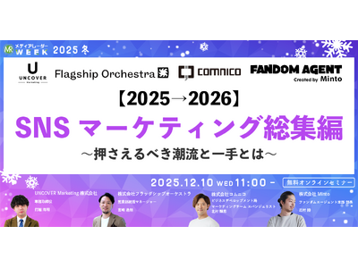 株式会社アイズ(所在地:東京都渋谷区、代表取締役社長:福島範幸、東証グロース:5242)が運営するNo.1*の広告業界のプラットフォーム「メディアレーダー」が主催するマーケティングセミナーイベント「第20回メディアレーダーWEEK 2025 冬」にて、SNSマーケティングの専門家たちが12/10(水)に登壇します。視聴申し込みは無料です。