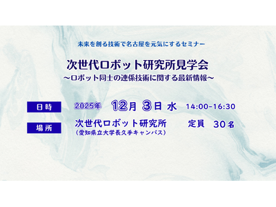 次世代ロボット研究所について、研究所全体のご紹介およびロボット同士の連係・協働に関する最新の技術情報を提供する見学会です。