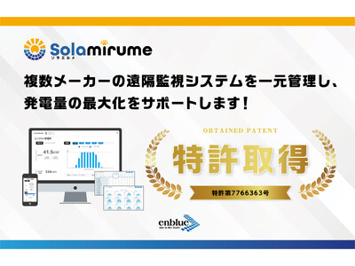 株式会社エンブルー(所在地:東京都千代田区神田須田町1-24-5 THECROSS神田5階、代表取締役:三浦洋之)は、このたび、弊社が提供する太陽光発電所の発電量最大化をサポートするDXツール「ソラミルメ」における一元管理機能について、特許を取得したことをお知らせいたします。
