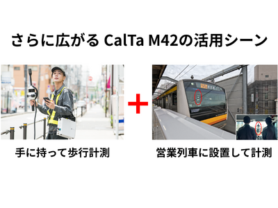 CalTa株式会社(本社:東京都港区、代表取締役CEO:高津 徹、以下「CalTa」)、株式会社マップフォー(本社:愛知県名古屋市、代表取締役:田中 一喜、以下「マップフォー」)は、高品質な広域点群データをより手軽に低コストで取得できるソリューション「CalTa M42」の活用シーンを拡大しました。これまでは撮影デバイスを手に持って点群を取得していましたが、特殊な治具の開発により、車両改造をすることなく営業列車で線路内点群の取得が可能となります。