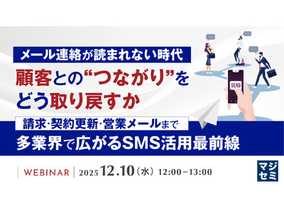 株式会社ファブリカホールディングスの完全子会社である株式会社メディア4u(東京都港区、代表取締役社長:岩館 徹)は、2025年12月10日(水)に、法人向け無料オンラインセミナー「メール連絡が読まれない時代、顧客との“つながり”をどう取り戻すか ~請求・契約更新・営業メールまで、多業界で広がるSMS活用最前線~」を開催いたします。