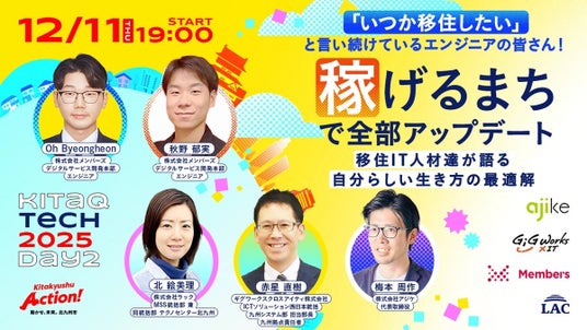 ギグワークスクロスアイティ株式会社(ギグワークス株式会社(東証スタンダード 2375)子会社 本社:東京都港区、代表取締役:小島正也、以下ギグワークスクロスアイティ)は、2025年12月11日(木)に北九州市が主催するオンラインイベント「いつか移住したい」と言い続けているエンジニアの皆さん! 【“稼げるまち”で全部アップデート】 移住IT人材達が語る、自分らしい生き方の最適解【KITAKYUSHU Tech 2025 Day2】に登壇することをお知らせいたします。