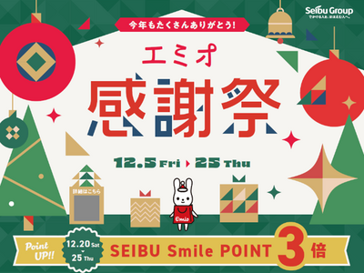 SEIBU Smile POINTがお得に貯まる2倍デー【12月5日(金)、12日(金)、19日(金)】、3倍デー【12月20日(土)~25日(木)】を全9日間で設定します。