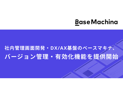 Web事業者様の社内管理画面をはじめとして、社内のERP補完・リプレイスなどにも使えるDX/AX基盤の「ベースマキナ」を提供する株式会社ベースマキナ(東京都中央区、代表取締役社長 高橋誠二)は、この度オペレーションに使う画面を段階的に社内展開するための「バージョン管理・有効化機能」を提供したことをお知らせいたします。