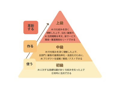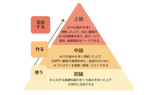 - 各職種に応じたAI人材をリテラシー・活用/開発/推進のレベルで定義し、社員が各レベルを意識しやすい育成環境を整備