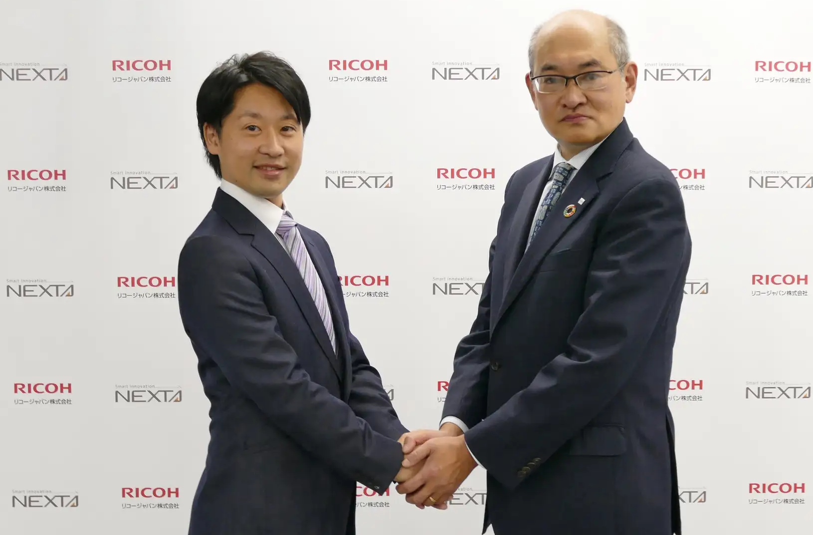 記者会見(左:ネクスタ 代表取締役 永原、リコージャパン 常務執行役員 宮本様)