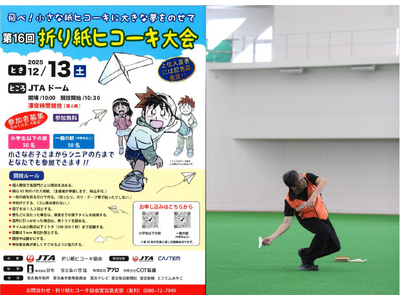 「第16回折り紙ヒコーキ大会」を2025年12月13日(土)、JTAドーム宮古島(沖縄県宮古島市)で開催いたします。