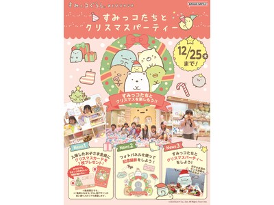 株式会社バンダイナムコエクスペリエンスは、「すみっコぐらしあそびスタジオ」全4店舗にて12月1日(月)~12月25日(木)の期間、クリスマスイベントを開催します。