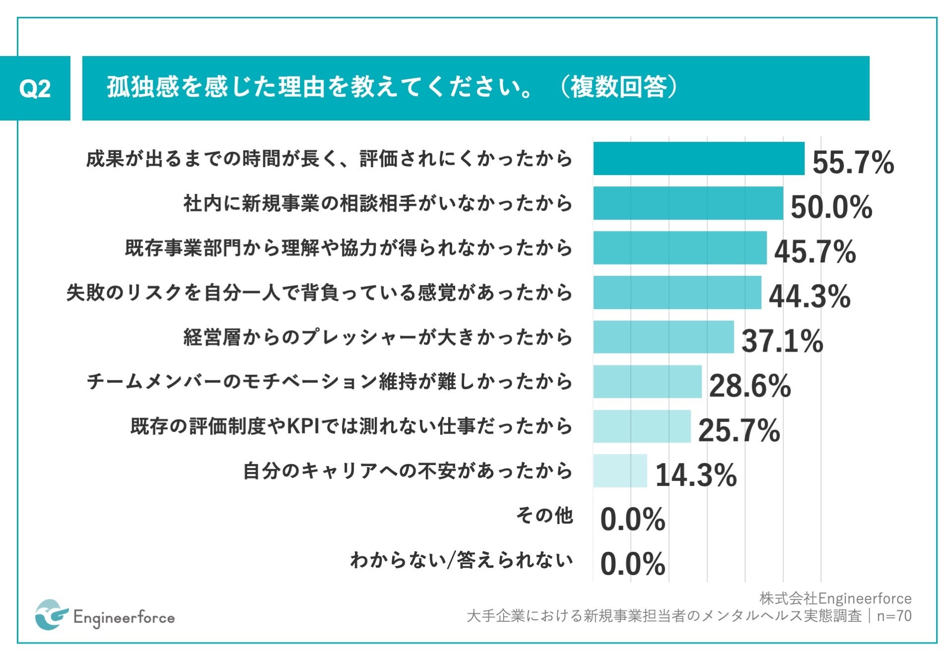 「Q2.孤独感を感じた理由を教えてください。(複数回答)」(n=70)と質問したところ、