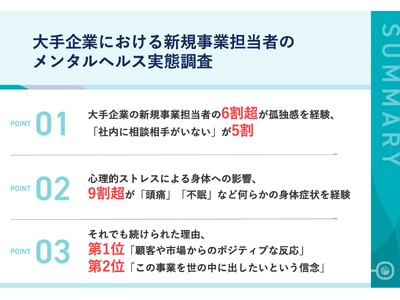 - 01| 大手企業の新規事業担当者の6割超が孤独感を経験、「社内に相談相手がいない」が5割