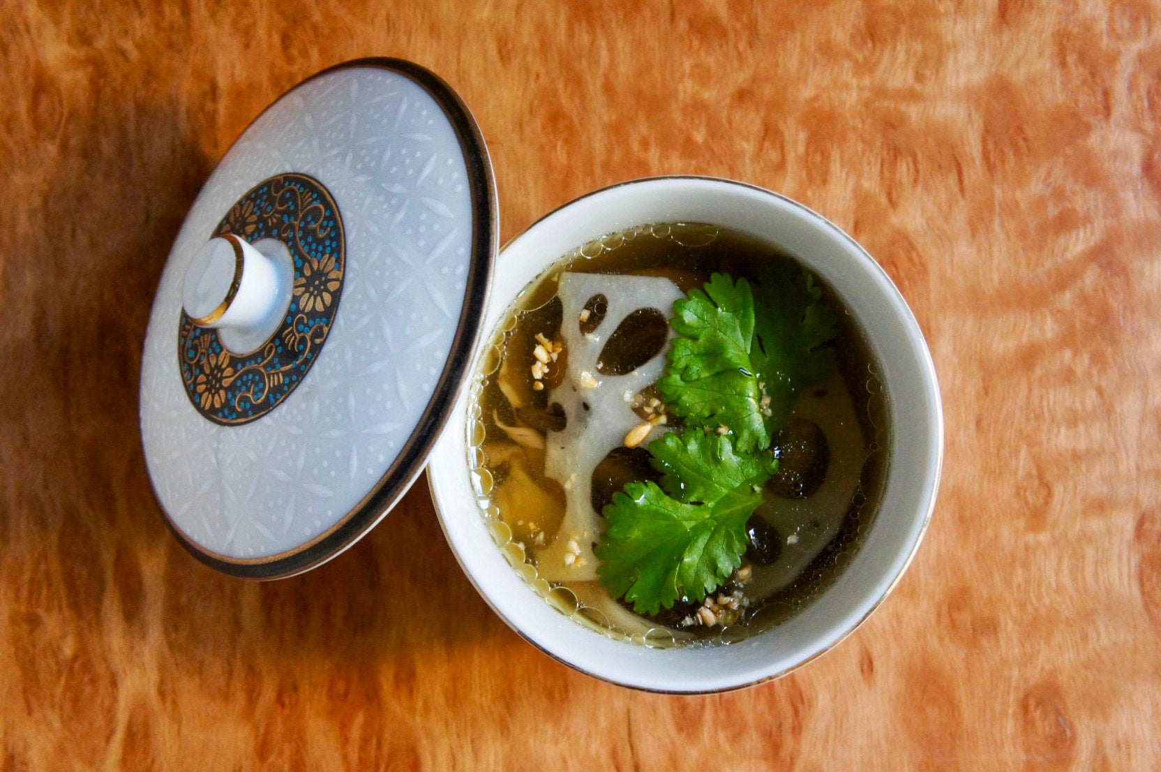 この蕪を、トムヤム・ナムサイという酸味が効いたクリアなスープと合わせ、蕪の甘みを存分に感じられるひと皿に仕立てました。