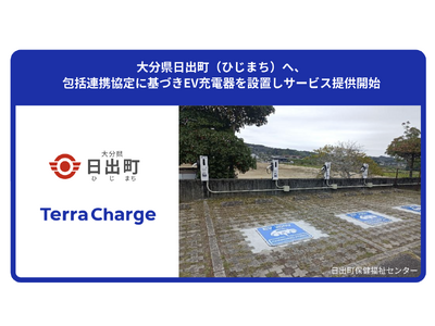 Terra Charge株式会社(本社:東京都港区、代表取締役:徳重 徹、以下「当社」)は、大分県日出町(ひじまち)が掲げる「2050年までに温室効果ガス排出量の実質ゼロ(ゼロカーボンシティ)」の実現に向けた取り組みを支援するため、令和7年5月14日に日出町と締結した包括連携協定に基づき、日出町保健福祉センターにEVチャージステーションを開設いたしました。