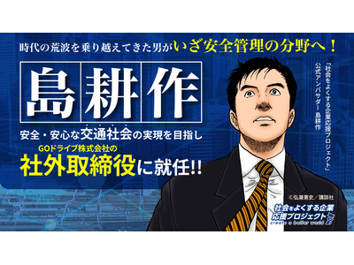 GOドライブ株式会社(本社:東京都千代田区、代表取締役社長:川上 裕幸)は、株式会社シンフィールド(本社:東京都千代田区、代表取締役:谷口 晋也)が発足し、“島耕作”が公式アンバサダーを務める「社会をよくする企業応援プロジェクト」(
