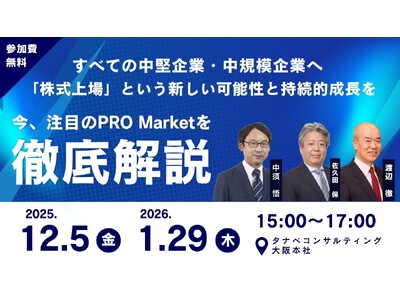 2025年12月5日(金)15:00~17:00と2026年1月29日(木)15:00~17:00に、「すべての中堅企業・中規模企業へ『株式上場』という新しい可能性と持続的成長を。【今、注目のPRO Marketを徹底解説】」をリアルで開催いたします。URL: https://eu1.hubs.ly/H0pKKkk0