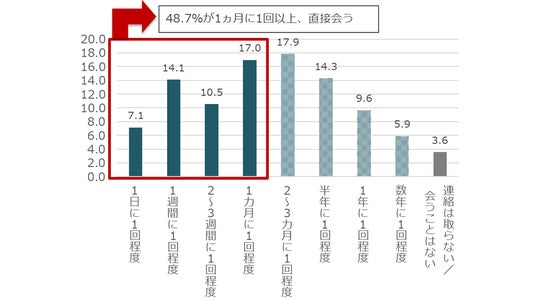 別居の親と直接会う頻度は1カ月に1回以上が半数