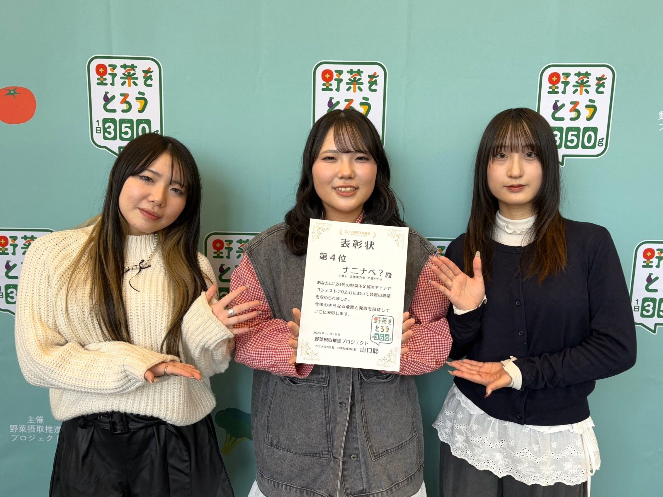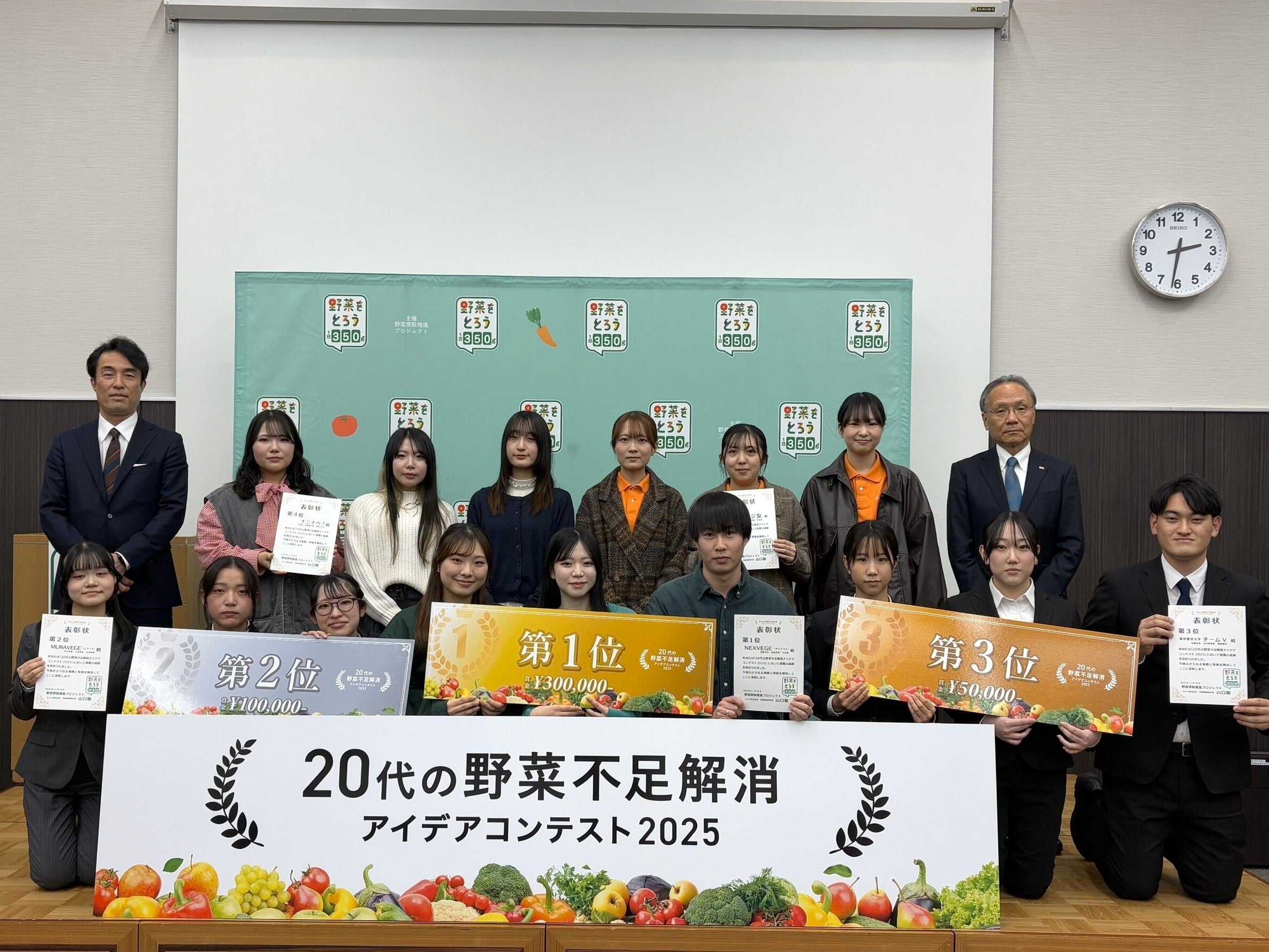 株式会社グライダーアソシエイツ(以下、「当社」という)が運営事務局を務める、カゴメ株式会社など20社からなる「野菜摂取推進プロジェクト」は、特に野菜摂取が大きな課題となっている若年層に向け、野菜摂取の意識を高めていただくため、4月から11月にかけて、全国の学生(大学・大学院・高等専門学校・専門学校)を対象とした「20代の野菜不足解消アイデアコンテスト」(以下、「本コンテスト」という)を実施しました。