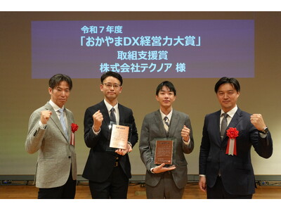 株式会社テクノア(本社:岐阜県岐阜市、代表取締役:山崎 耕治)は、このたび令和7年度「おかやまDX経営力大賞」において、「優秀賞」を受賞したお客様へのシステム提供とサポートに尽力したことが評価され「取組支援賞」を受賞しました。