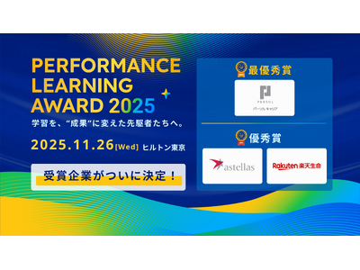 本アワードは、単なる知識のインプットに留まらず、学習を企業の業績や経営インパクトに直結させた優れた取り組みを表彰する、パフォーマンスラーニングに特化した日本唯一のアワードです。厳正なる一次審査を経て選出されたファイナリスト16社の中から、外部審査員による二次審査を経て、最優秀賞、優秀賞および各部門賞(パフォーマンスラーニングデザイン賞、ビジネスインパクト賞、AIトランスフォーメーション賞、スケーラビリティー賞)の受賞者が決定しました。