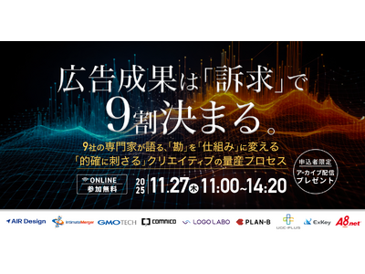 ~9社の専門家が語る、「勘」を「仕組み」に変える「的確に刺さる」クリエイティブの量産プロセス~』を主催することをお知らせいたします。