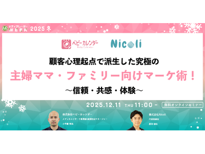 株式会社アイズ(所在地:東京都渋谷区、代表取締役社長:福島範幸、東証グロース:5242)が運営するNo.1*の広告業界のプラットフォーム「メディアレーダー」が主催するマーケティングセミナーイベント「第20回メディアレーダーWEEK 2025 冬」にて、主婦ママ・ファミリー向けマーケティングの専門家たちが12/11(木)に登壇します。視聴申し込みは無料です。