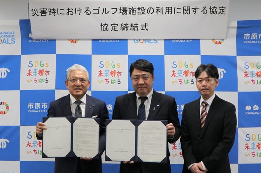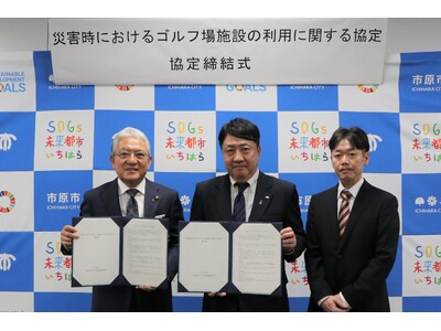 千葉県市原市では、激甚化・頻発化する台風・豪雨等の自然災害や、近い将来の発生が懸念される大規模地震に備えるため、ゴルフ場連絡協議会と平成8年9月11日に締結した「災害時におけるゴルフ場施設の利用に関する協定」の協力事項を見直し、協定を再締結しました。