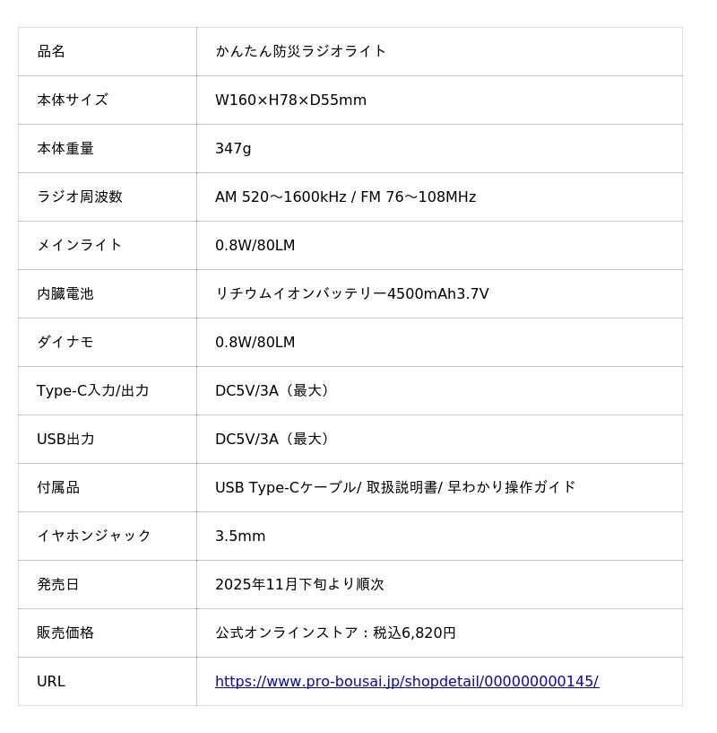 この度、株式会社防災ダイレクトは、日本語表記で誰でも簡単に操作が可能な、自動選局機能付きの「かんたん防災ラジオライト」を、2025年11月下旬より公式オンラインストアおよび各ECモールにて順次発売いたします。