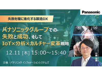 パナソニック インフォメーションシステムズ株式会社は、2025年12月11日(木)『失敗を糧に進化する製造DX:パナソニックグループでの失敗と成功、 そして「IoT×分析×カルチャー変革」戦略』セミナーを開催します。