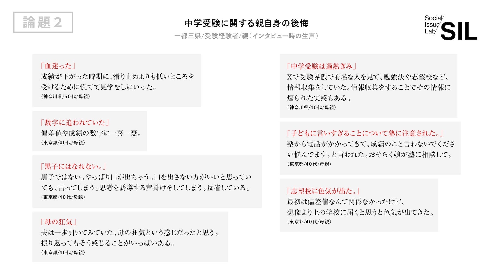 人と社会のために問いを探究するリサーチとプランニングのQO株式会社(代表取締役社長:恒藤優/本社:東京都中央区、以下「QO」)は、社会課題に光を当てるSocial Issue Lab(以下「SIL」)の一環として、株式会社スプリックス(代表取締役社長:常石博之/本社:東京都渋谷区)と共同で「中学受験のホンネ」をテーマとした調査を実施し、生活者の生声をまとめたソーシャルレターを発表しました。