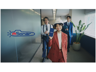 <ストーリー> とあるオフィス。社長と若手営業社員が廊下を歩いている。社長が「うちさあ、名刺データが増えているだけじゃない?」と問題提起。若手社員が「名刺データから営業先が見つかるいいサービス見つけたんですよ」と応じる。しかし二人とも、肝心のサービス名が思い出せません。そこへ、窓ふきゴンドラに乗った小林涼子営業部長が登場し「それ、mソナーです!」とアピール。オフィス空間に入り込んだ小林部長は、二人を引き連れながら、日本最大級の企業データベースを搭載したmソナーの魅力を伝えていきます。すっかり魅せられた社長は、ラストシーンで思わず「相談させてください」とつぶやきます。