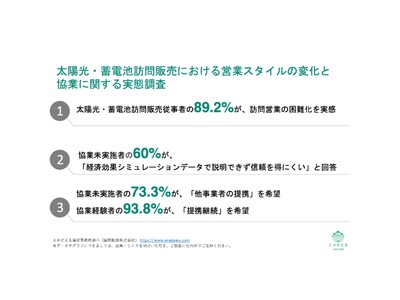 - 調査名称:太陽光・蓄電池訪問販売における営業スタイルの変化と協業に関する実態調査