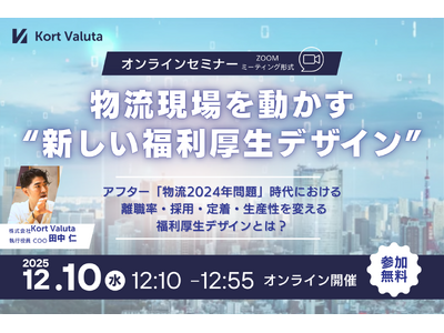 株式会社Kort Valuta(本社:東京都渋谷区、代表取締役:柴田秀樹、以下「当社」)は、物流・運送業界で大きな影響が出ている「物流2024年問題」を背景に、現場の課題と改善のヒントをテーマとしたオンラインセミナーを2025年12月10日(水)に開催いたします。