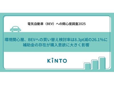 株式会社KINTO(本社:愛知県名古屋市、代表取締役社長:小寺 信也)は、現在クルマを保有しており、かつ環境問題に関心があると回答した方555名を対象に、電気自動車(BEV)への関心度調査2025を実施しましたので、お知らせいたします。