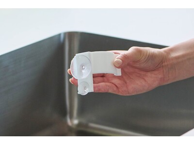 工具不要、誰でも簡単に取り付け可能な吸盤取付。上下2点でボトルをしっかり固定する“支える×止める”構造を採用。ボトルが傾かず安定し、しっかり吸着することで外れにくい設計。