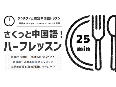 株式会社イーオン(本社:東京都新宿区、代表取締役社長:重野卓、以下「イーオン」)が運営するハオ中国語アカデミーは、首都圏8校にて通常50分間のレッスンを平日ランチタイム限定で25分間のハーフレッスンを提供いたします。