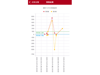 iOSアプリから設備点検結果の直近の傾向をグラフで確認できる機能を追加します。このグラフはMENTENAで点検作業を行う途中で、作業を中断することなく表示可能です。また、過去の点検時に登録したコメントなども確認できます。