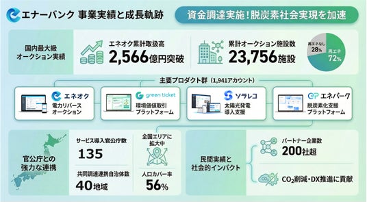エナーバンクは、自治体や企業が直面する電力調達の複雑さを解消し、脱炭素社会の実現に向けたGXを加速する革新的なプラットフォームを提供しています。電力リバースオークション「エネオク」をはじめ、再エネ調達や創エネ、オフセットまでを包括的に支援するソリューションは、需要家目線での利便性と社会的インパクトを兼ね備えており、今回の資金調達を通じて、プロダクト開発や営業体制の強化により、さらなる事業成長が期待されます。