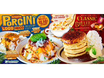 株式会社KONA’S(本社:東京都渋谷区、代表取締役社長:阿部 和剛)が展開する、食の感動体験を探求し「いちばん近いハワイ」をコンセプトに掲げるハワイアン カフェ・レストラン「コナズ珈琲」は、「チーズホワイトポルチーニロコモコ」「クラシックブリュレパンケーキ」など冬の限定商品を2025年12月10日(水)から全国のコナズ珈琲(※)で新発売します。