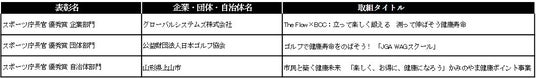 雲南市が選ばれました。また、特にスポーツ・運動を通じて優れた取組を行うスポーツ庁長官 優秀賞には、企業部門で