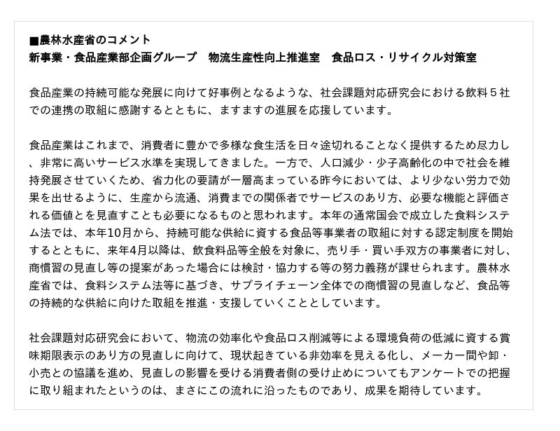 添付資料2.: 活動に賛同いただいた農林水産省からのコメント